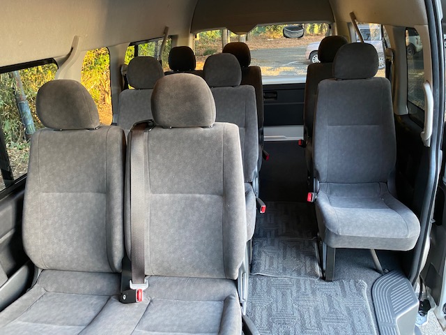 9名様までご乗車可能です。(後部3列シート8席、助手席1席)